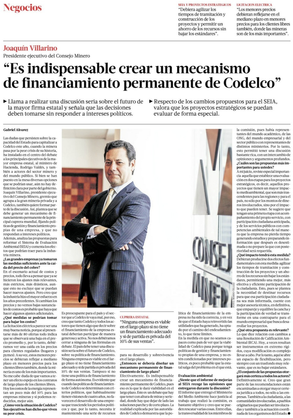 Cesco sugiere que capitalización de Codelco debe exigir compromisos - (El Mercurio de Santiago)
