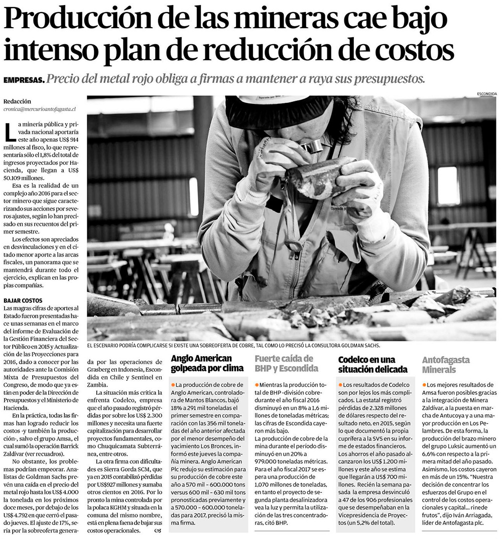 El 64% de las mayores mineras redujo su producción durante el primer semestre - (Pulso)