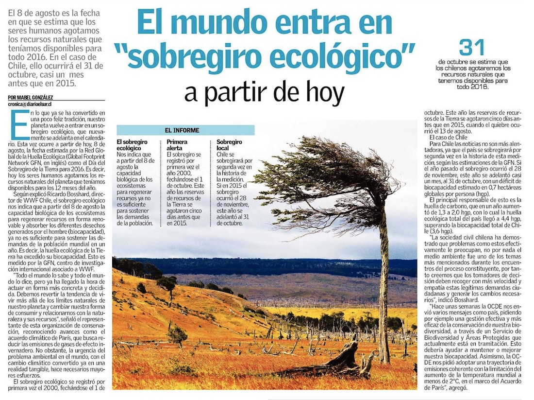 Informe advierte que déficit ecológico de Chile comenzará en octubre - (La Tercera)
