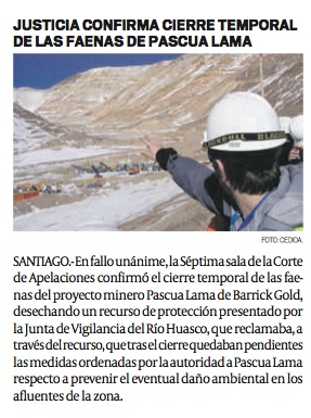 Corte rechaza recurso de protección de regantes contra Pascua Lama - (Pulso)