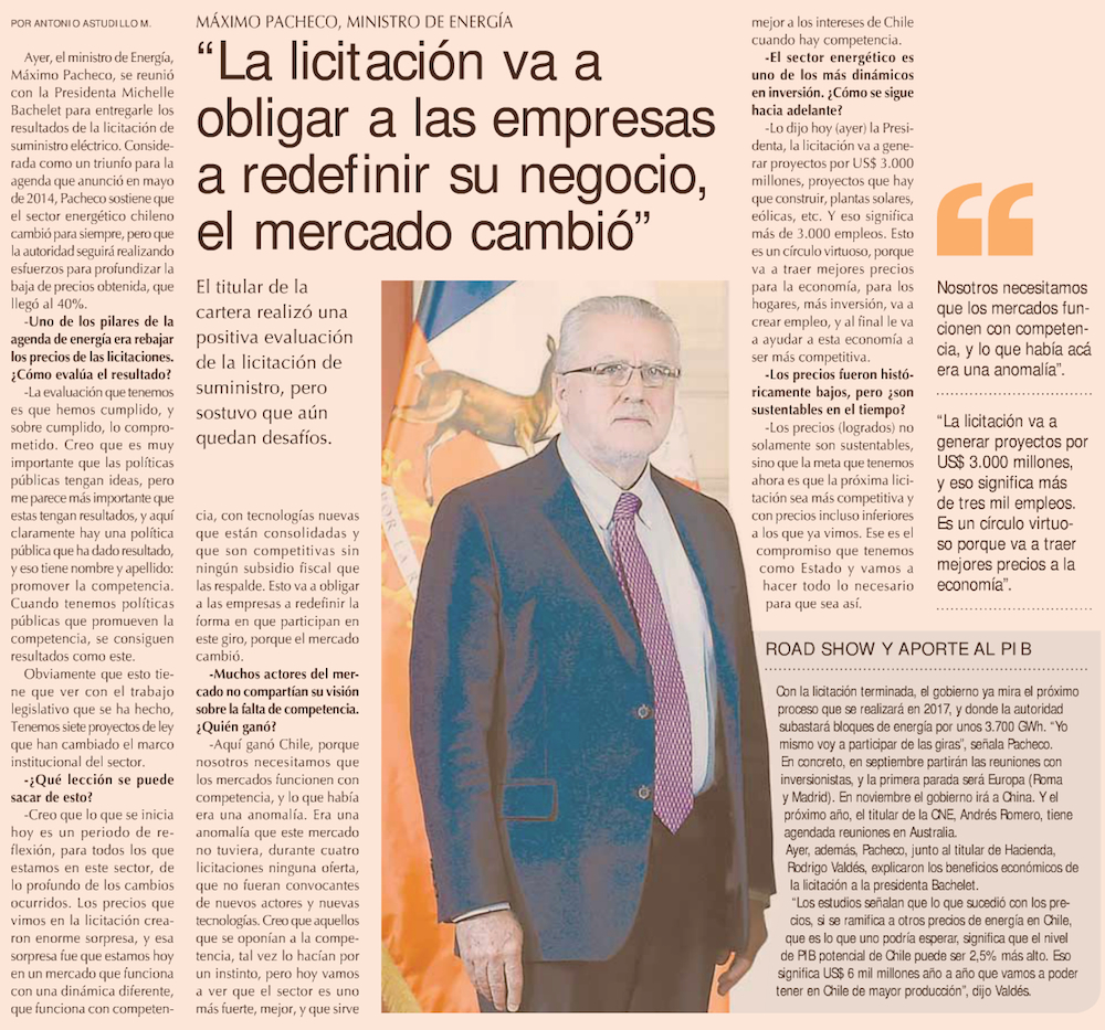 Bachelet y Valdés apuestan a sacar rédito político del éxito de Pacheco en licitación eléctrica - (El Mostrador)