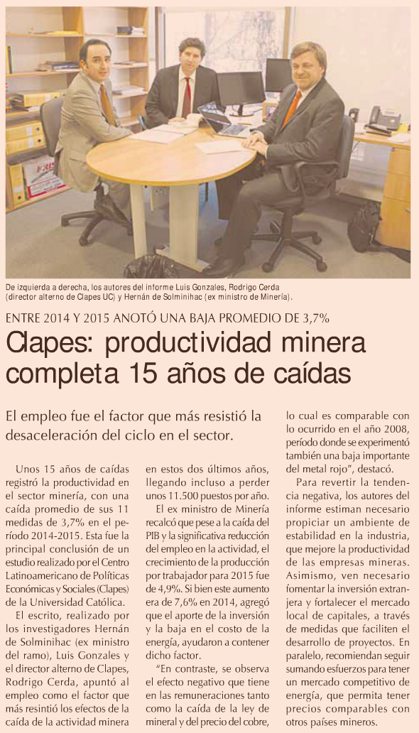 Productividad minera lleva 15 años creciendo negativamente - (La Segunda)