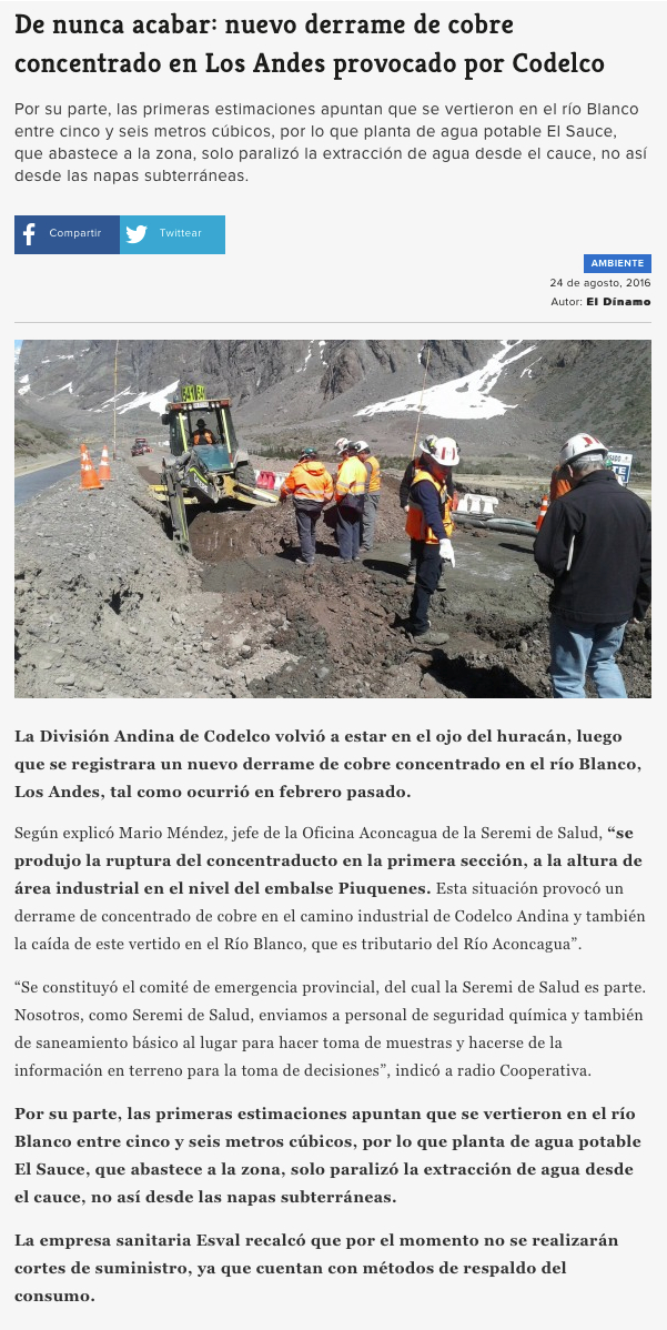 Alerta provocó el derrame de concentrado de cobre - (El Mercurio de Santiago)