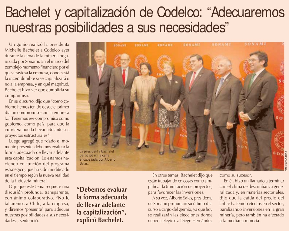 Bachelet y Codelco: hay que evaluar la forma de capitalización - (La Tercera)