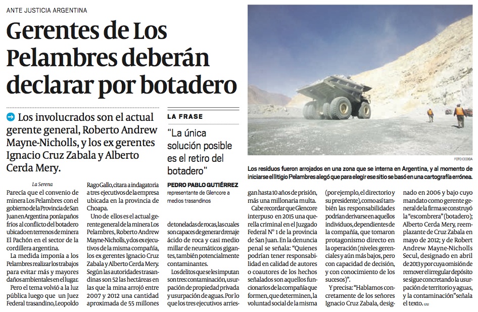 Justicia argentina cita a declarar a gerente general de Minera Los Pelambres por litigio con Glencore - (The Clinic online)