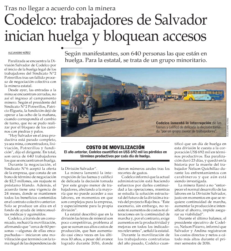 Trabajadores paralizan División Salvador en primer día de huelga - (El Diario de Atacama)