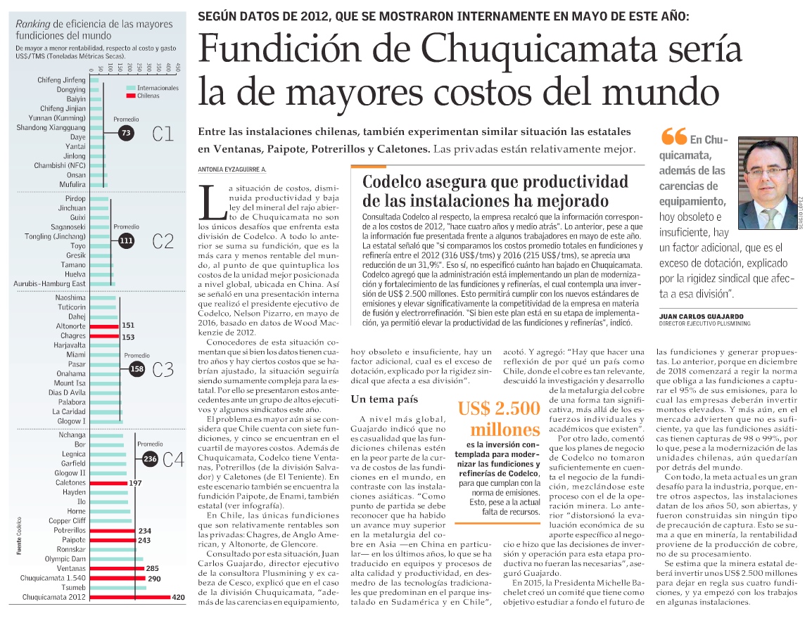 Fundición de Chuquicamata es la menos rentable del mundo - (El Mercurio de Calama)