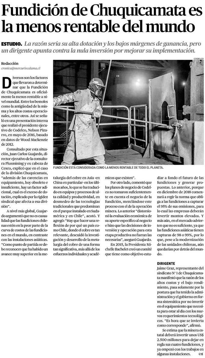Fundición de Chuquicamata sería la de mayores costos del mundo - (El Mercurio de Santiago)