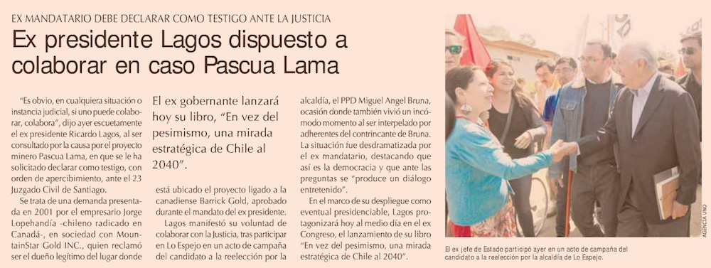 Lagos dijo que declarará en el caso sobre Pascua Lama - (El Diario de Atacama)