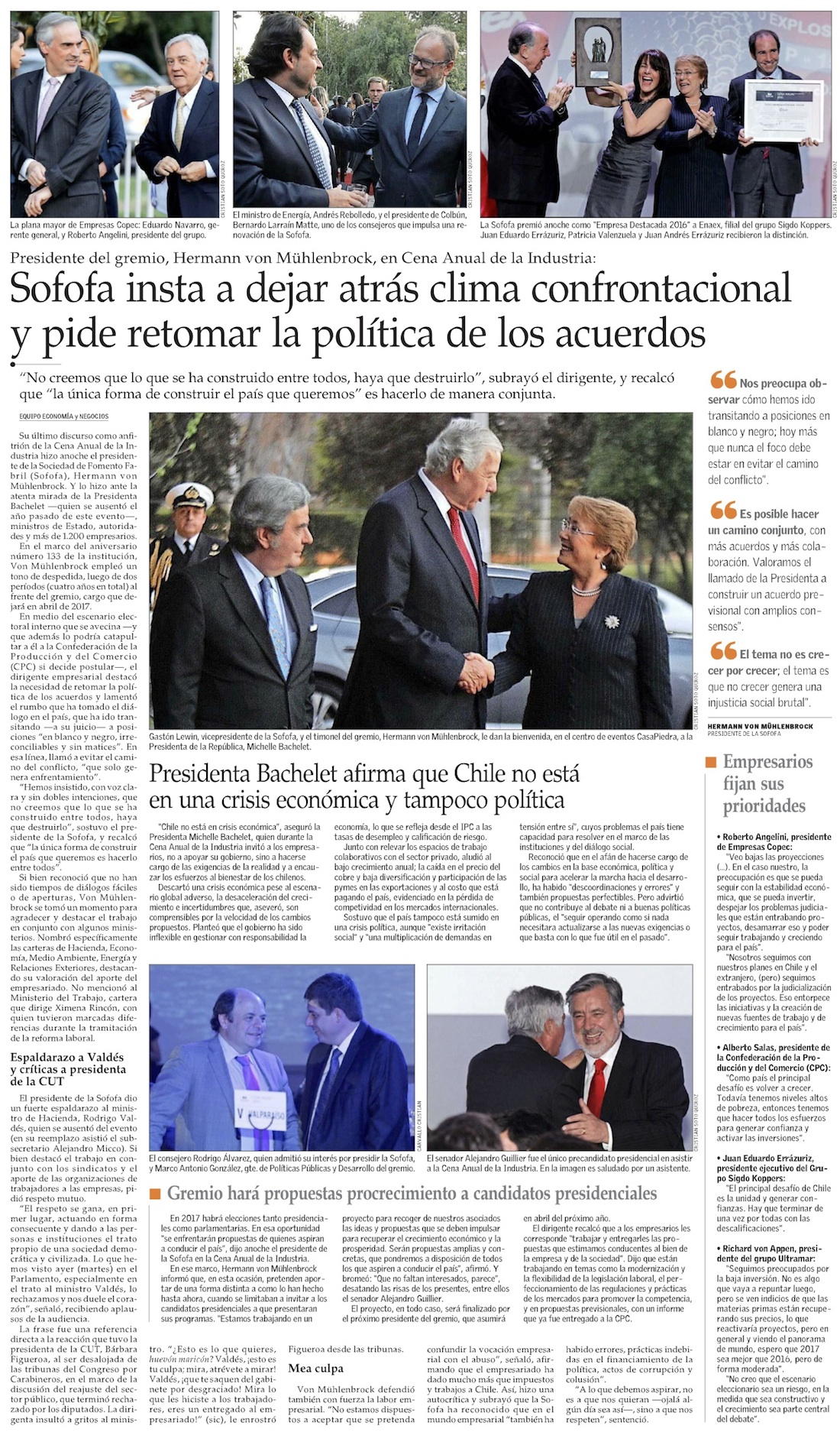 Empresarios y Presidenta hacen las paces –al menos por una noche– en cena anual de la Sofofa - (El Mostrador)