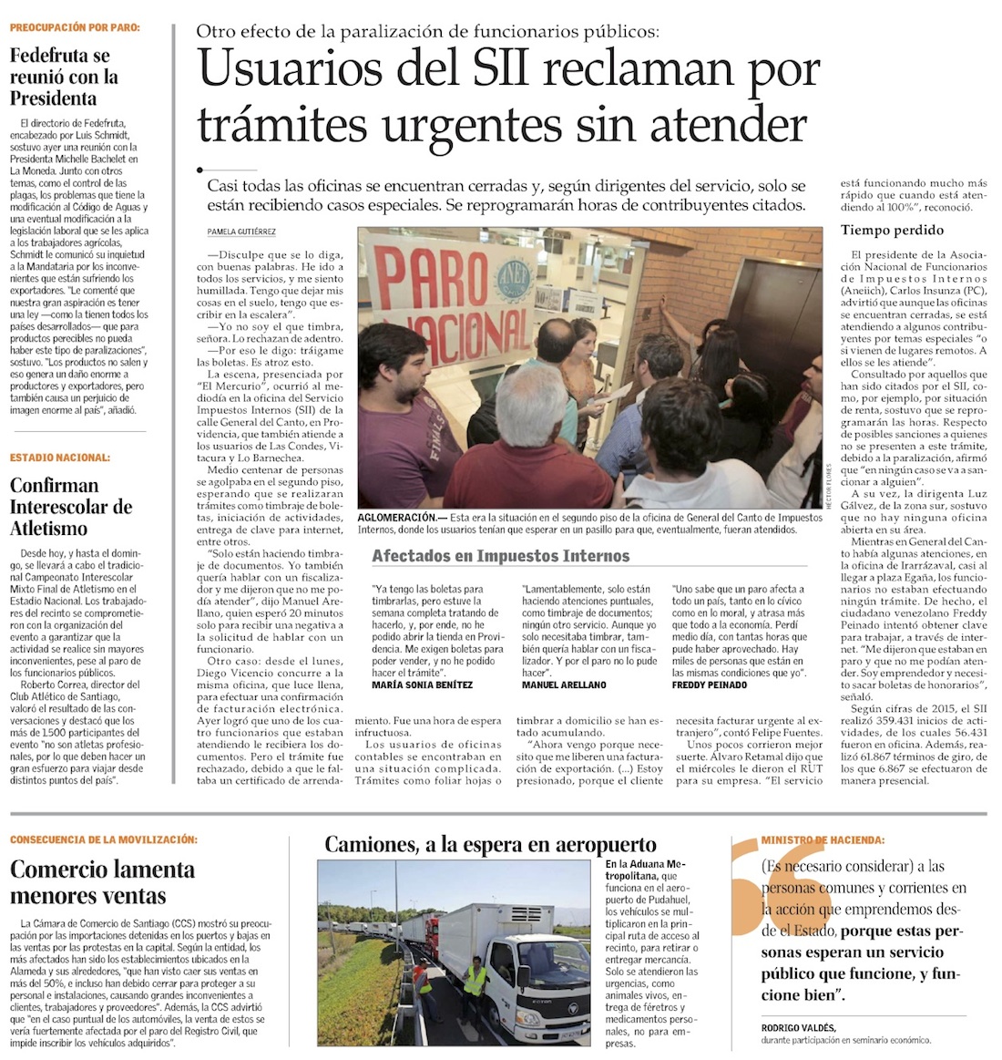 Paro del sector público entra en fase crítica y empresas alertan por mermas en cargas - (Diario Financiero)