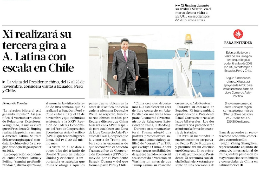 China corteja a Latinoamérica y a Chile ante la inminente muerte del TPP - (Diario Financiero)