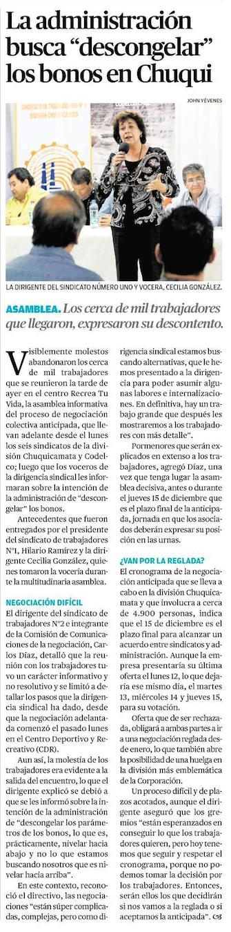 Sin avances continúa negociación colectiva en Chuquicamata - (El Mercurio de Antofagasta)