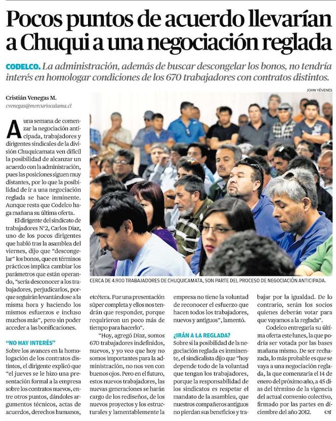 Sin avances continúa negociación colectiva en Chuquicamata - (El Mercurio de Antofagasta)