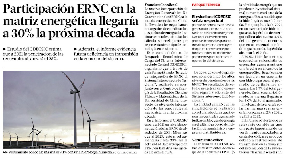 Informe respalda al gobierno: sistema eléctrico sí soportaría 30% de ERNC a 2025 - (Pulso)
