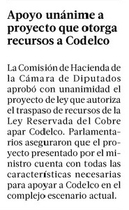 Hacienda presenta proyecto de ley para Codelco - (El Mercurio de Santiago)