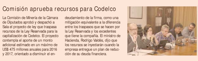 Se aprueba recursos para capitalización de Codelco - (La Tercera)