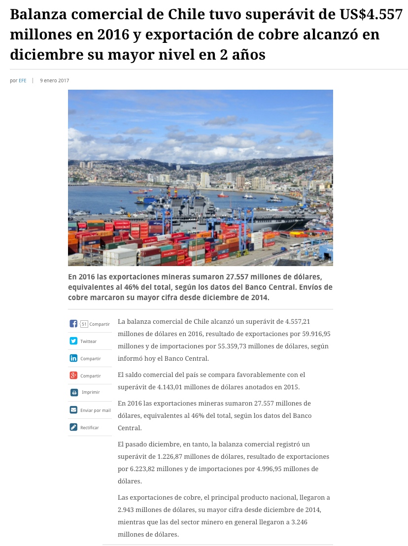 Exportaciones cierran 2016 en rojo y acumulan cinco años de retrocesos - (Diario Financiero)