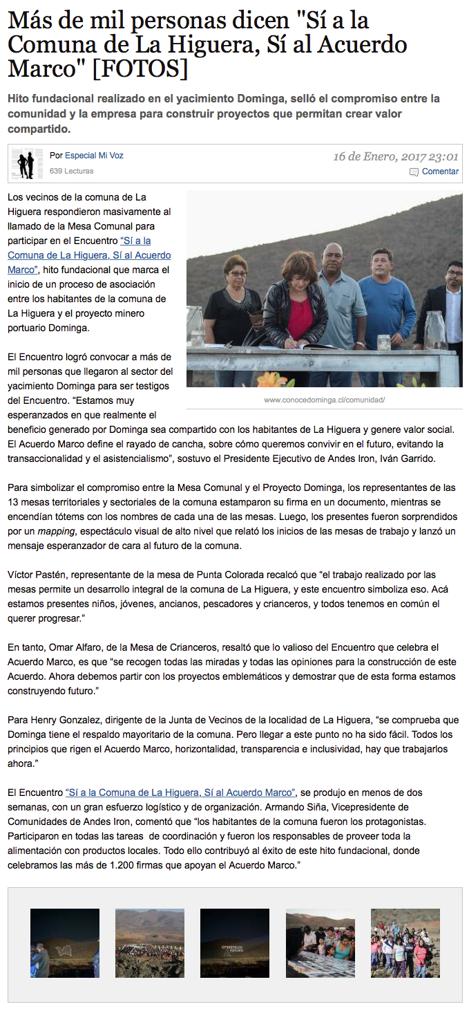 Mesa Comunal de La Higuera entregó apoyo a proyecto Dominga - (La Región)