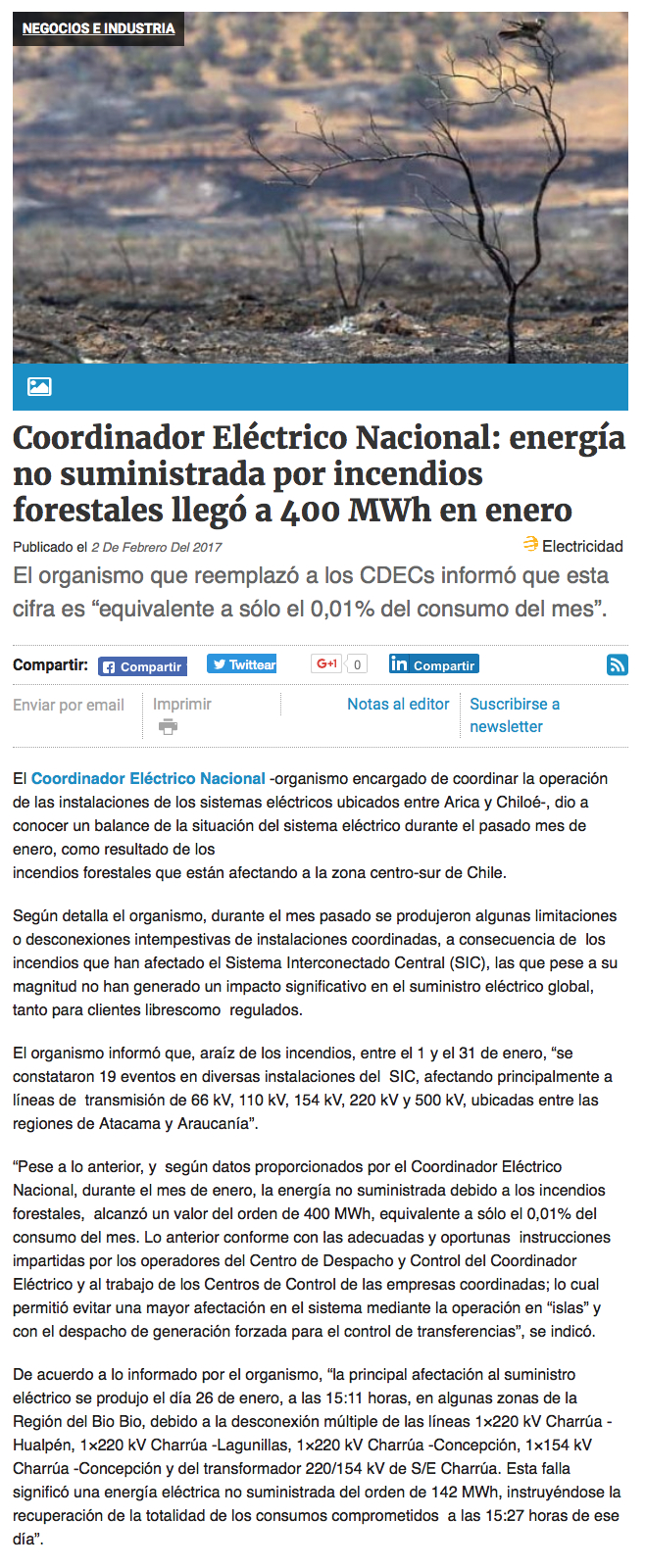 Red eléctrica sufrió merma de 400 MWh - (El Mercurio de Santiago)