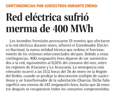 Coordinador Eléctrico Nacional: energía no suministrada por incendios forestales llegó a 400 MWh en enero - (revistaei.cl)