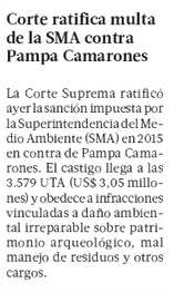 Minera Pampa Camarones deberá pagar $2 mil millones en multas ambientales - (La Segunda)