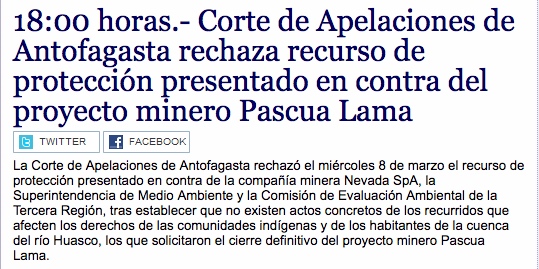 Corte de Apelaciones rechazó recurso contra Pascua Lama - (El Diario de Atacama)