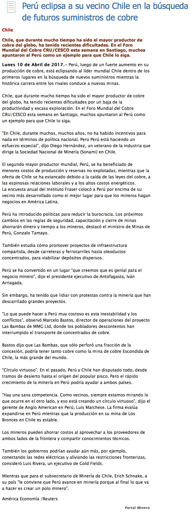 portalminero - Lunes, 10 de Abril de 2017