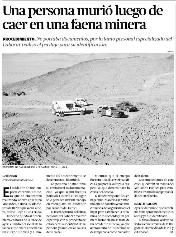 Supervisor muere en accidente en la División Salvador de Codelco - (El Diario de Atacama)