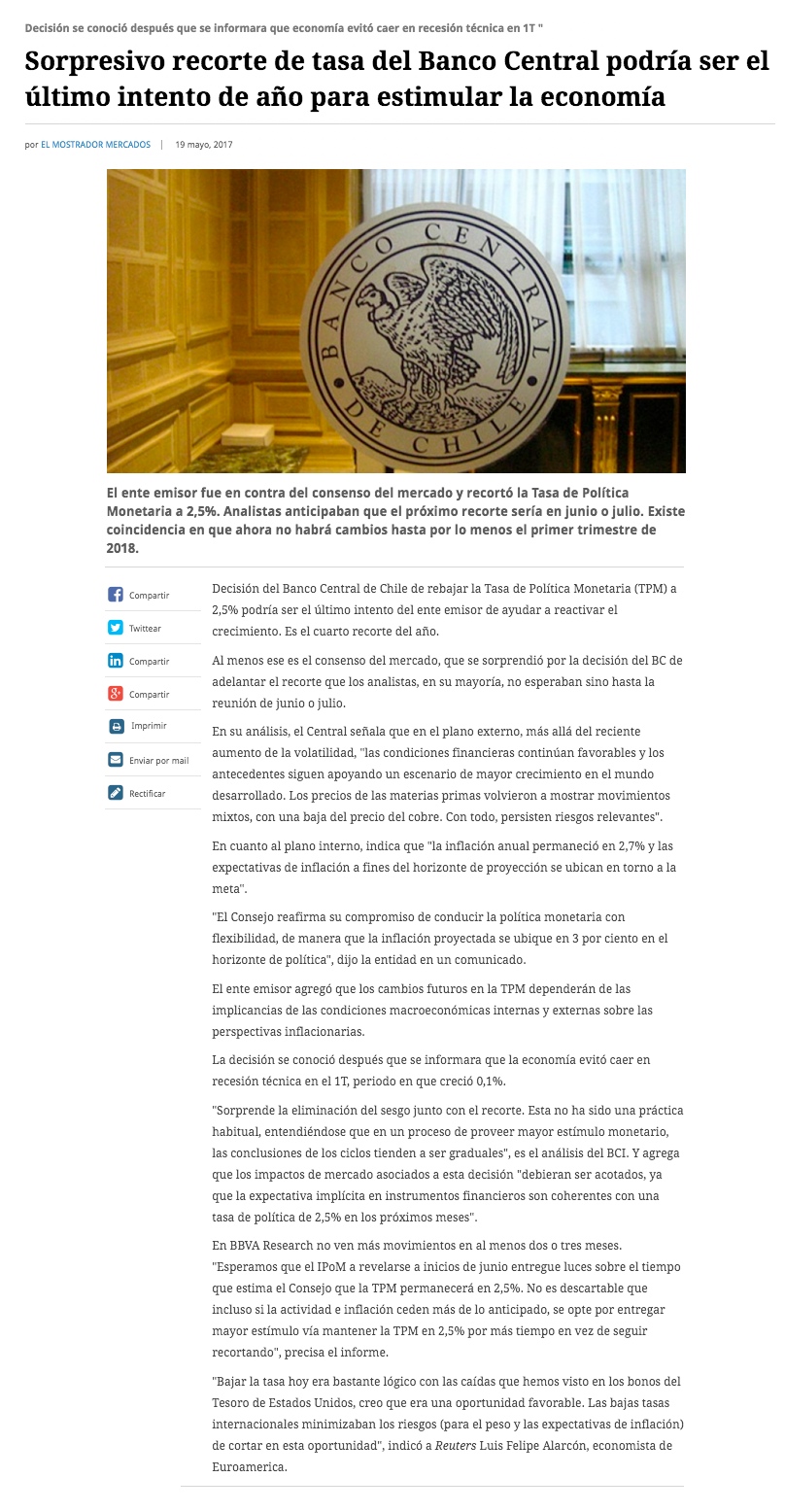 BC recorta tasa a 2,5% y mercado prevé fin de ciclo de impulso monetario - (La Tercera)