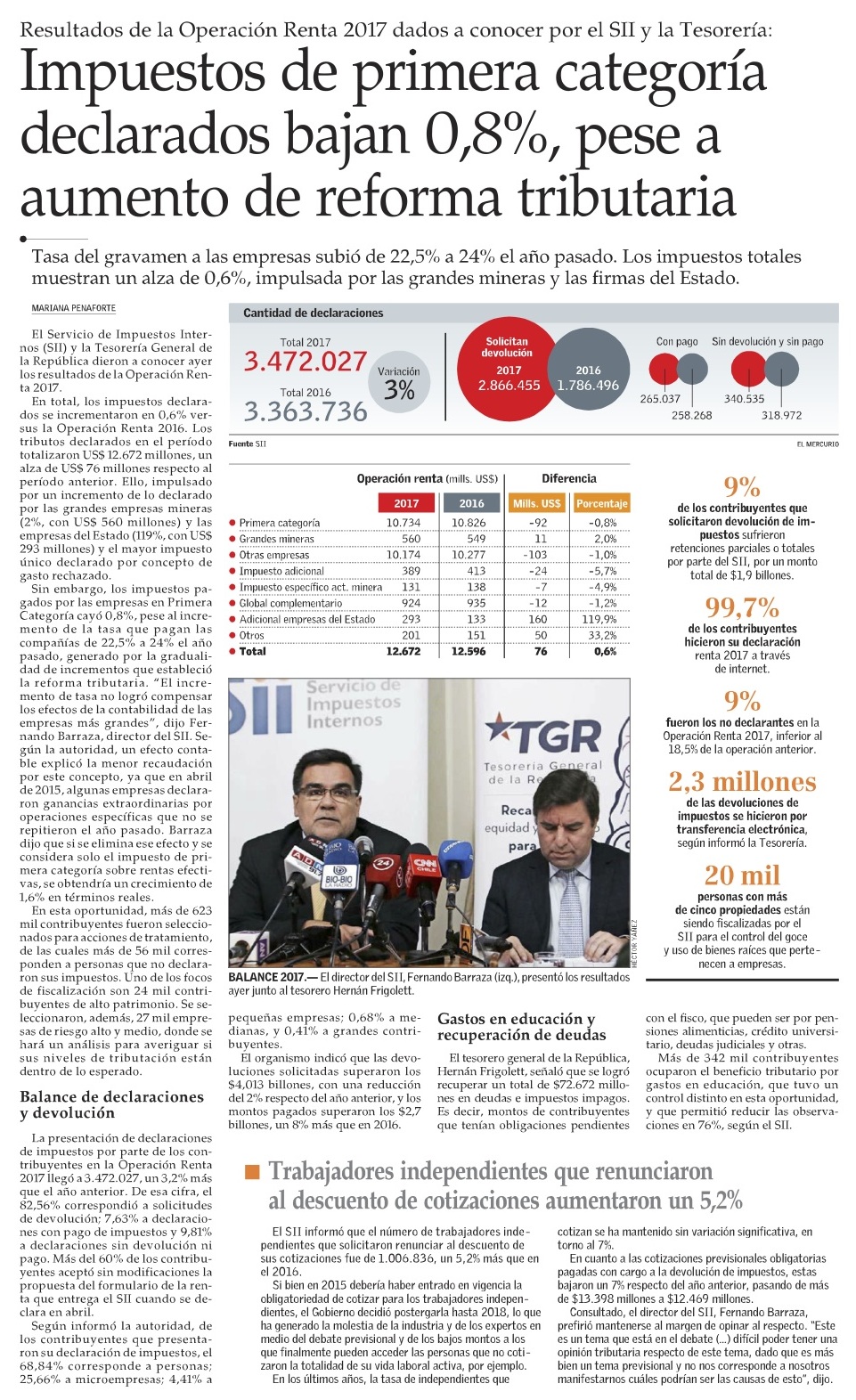 Pese a mayor tasa, recaudación por impuesto a empresas cae en 2016 por desaceleración - (Pulso)