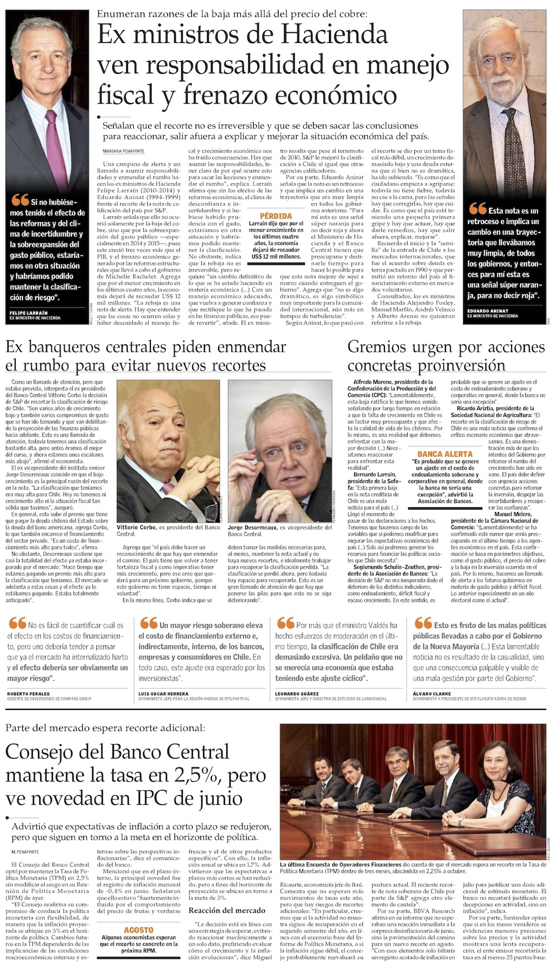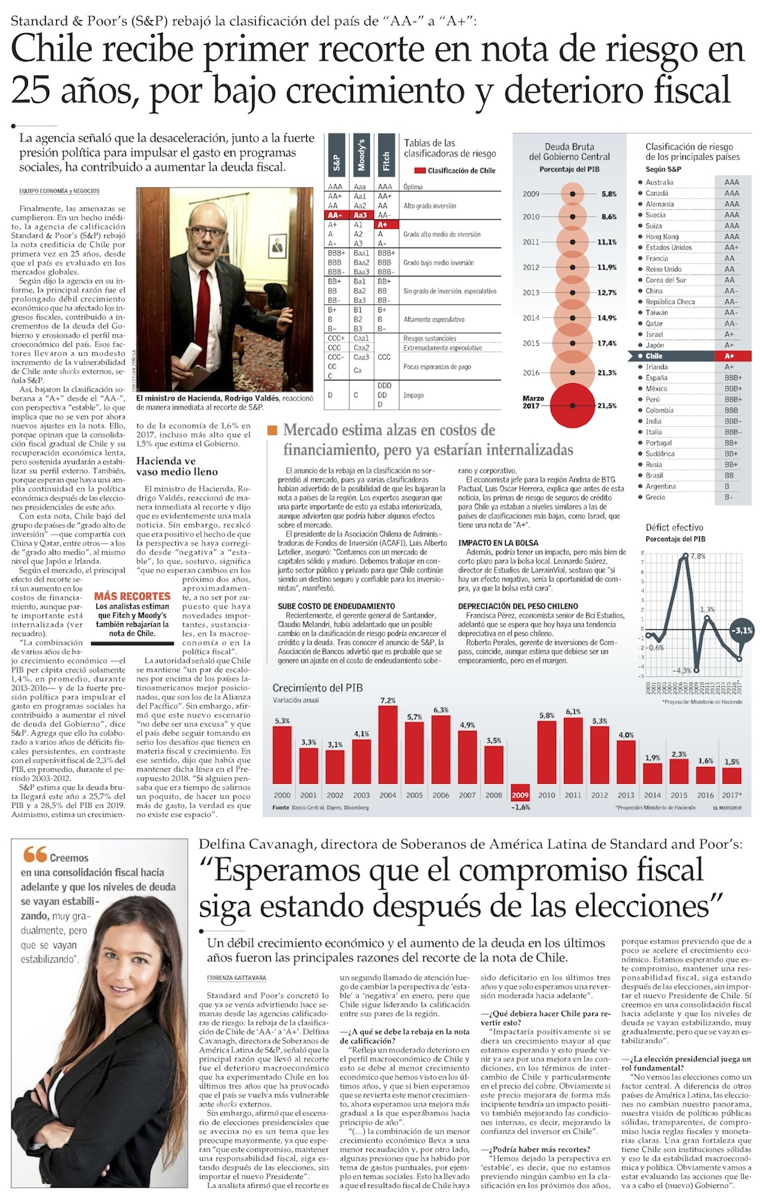 S&P recorta nota de Chile ante bajo PIB y mayor deuda, y advierte “presión política” para subir gasto - (La Tercera)