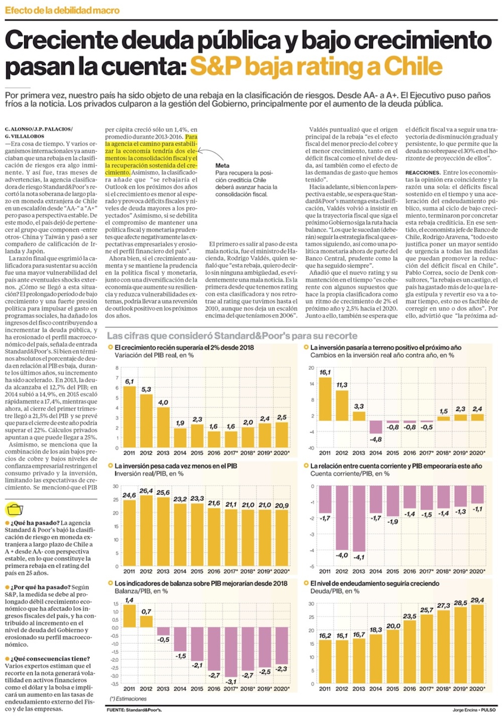 S&P recorta nota de Chile ante bajo PIB y mayor deuda, y advierte “presión política” para subir gasto - (La Tercera)
