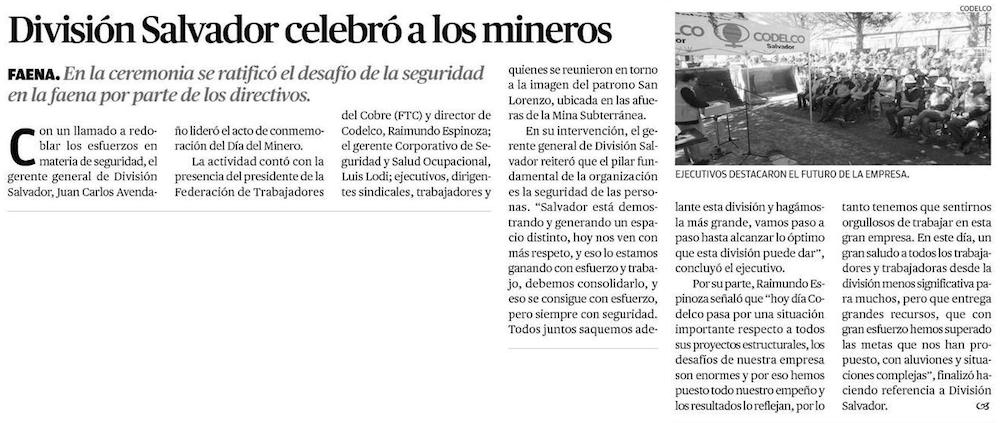 División Salvador conmemoró Día del Minero - (Radio Nostálgica)