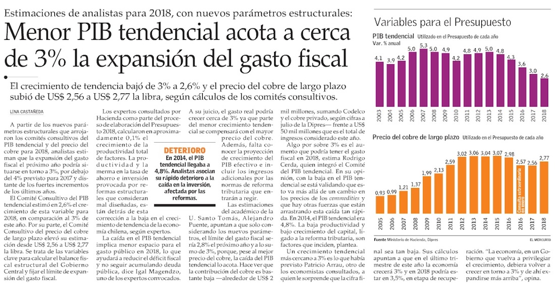 Ministerio de Hacienda da a conocer PIB tendencial y Precio de Referencia del Cobre para el Presupuesto 2018 - (Estrategia Online)