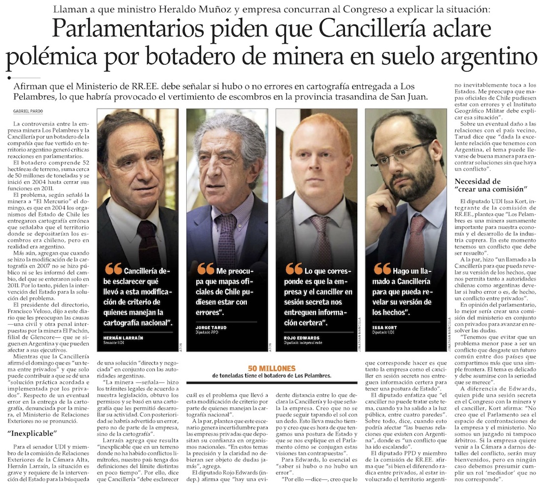 El conflicto que crece entre minera Pelambres y Cancillería por botadero en suelo argentino - (El Mercurio de Santiago)