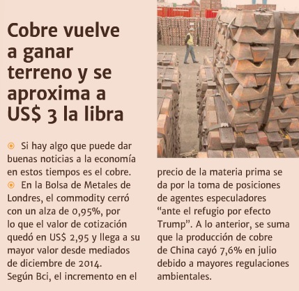 Cobre logra su mayor precio desde 2014 y dólar baja la barrera de $645 - (El Mercurio de Santiago)