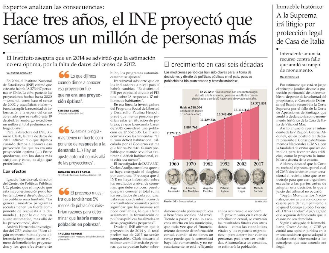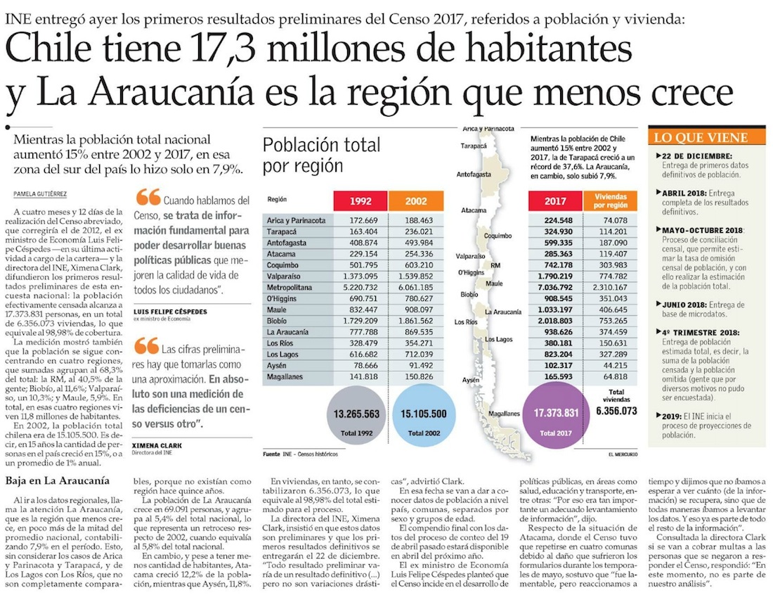 El nuevo número de la población chilena que abre el debate: 17.373.831 - (La Tercera)