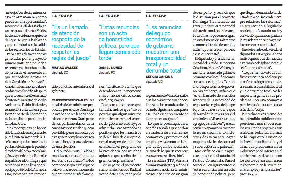 Eyzaguirre reemplaza a Valdés en Hacienda y asegura que su prioridad será el crecimiento: “A buen entendedor, pocas palabras” - (El Mercurio de Santiago)