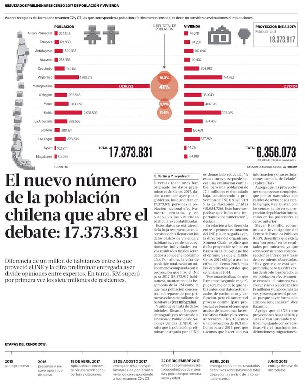 Chile tiene 17,3 millones de habitantes y La Araucanía es la región que menos crece - (El Mercurio de Santiago)