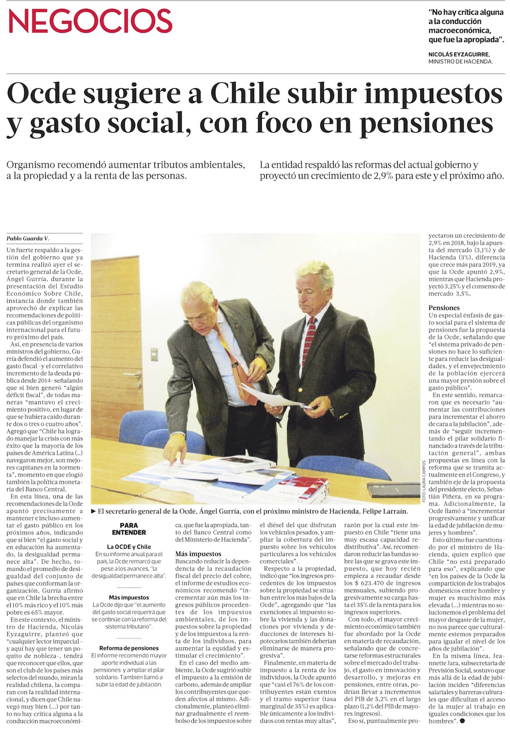 OCDE recomienda a Chile subir los impuestos para respaldar un crecimiento más inclusivo - (La Segunda)