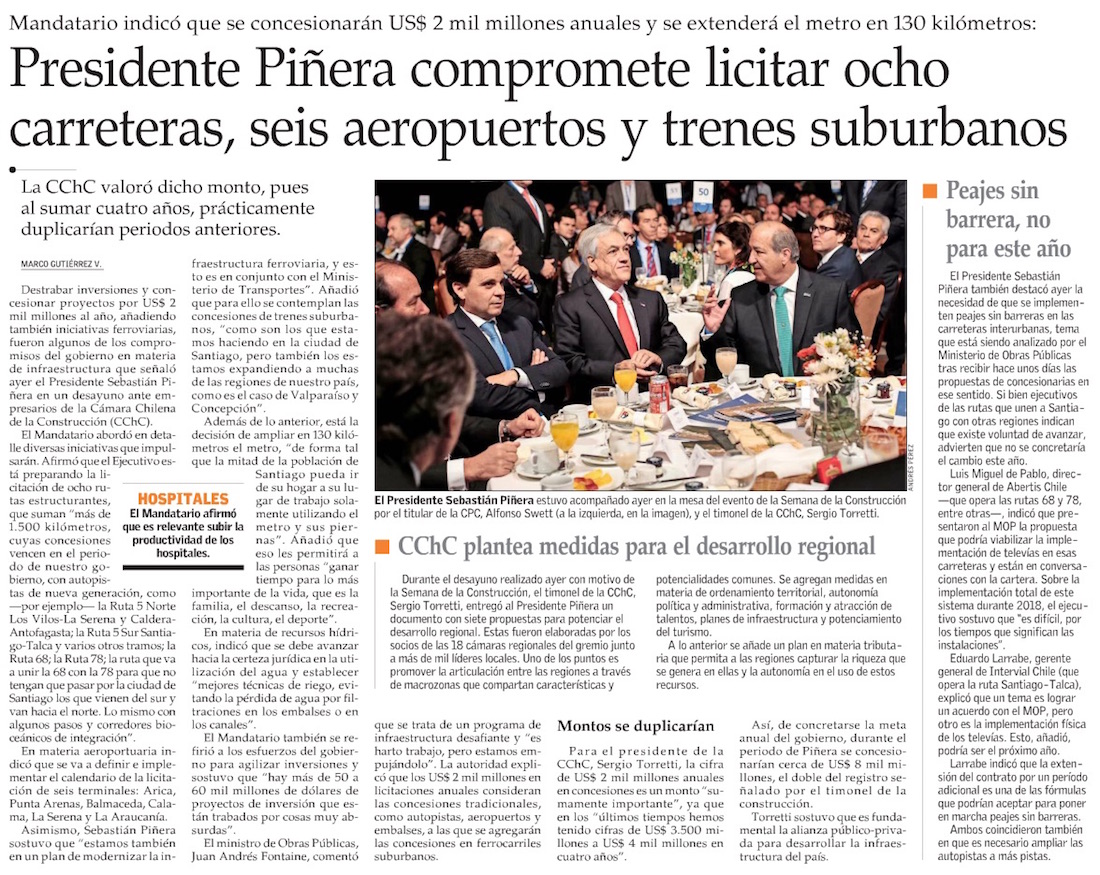 Piñera anuncia reimpulso a concesiones - (La Segunda)