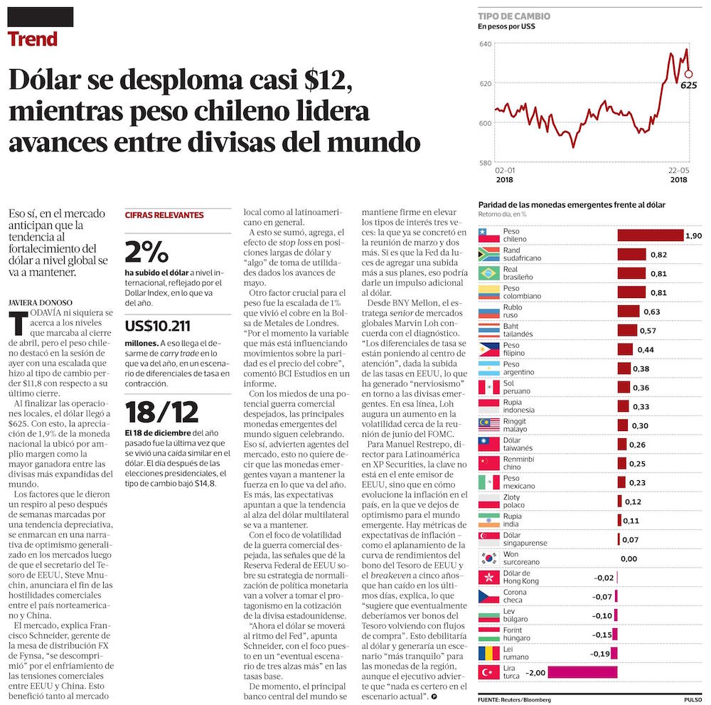 Peso chileno, la moneda emergente que más se apreció frente al dólar - (Diario Financiero)