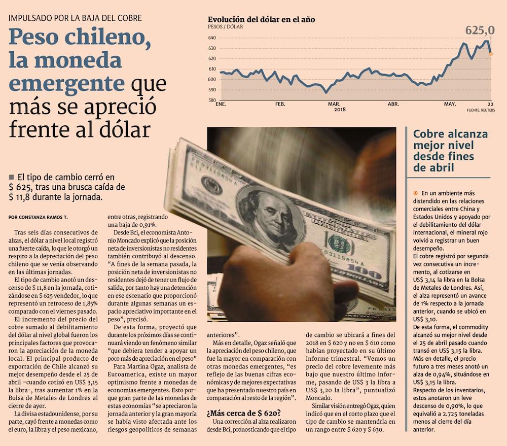 Dólar anota mayor baja desde eleciones y el peso es la moneda que más sube en el mundo - (El Mercurio de Santiago)