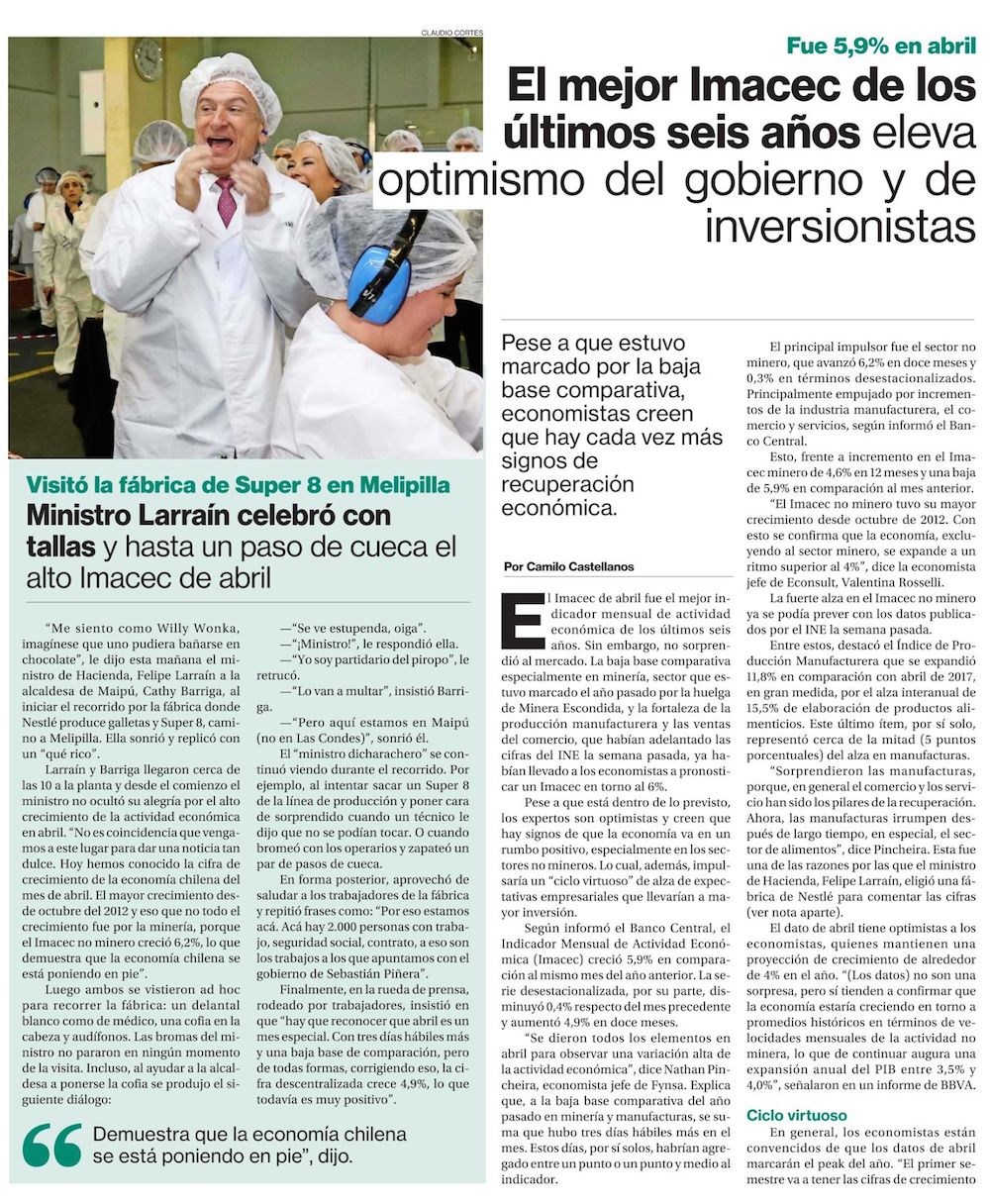 Economía anota mayor crecimiento en casi seis años y destaca alza de industria y comercio - (El Mercurio de Santiago)