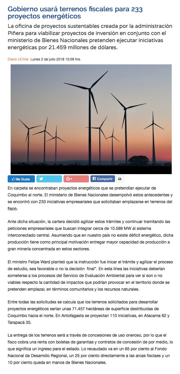 Gobierno busca agilizar uso de terrenos fiscales para 233 proyectos energéticos - (El Mercurio de Santiago)