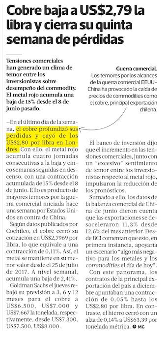 Cobre cae de US$2,8 y el petróleo baja 9% en cuatro días - (Pulso)