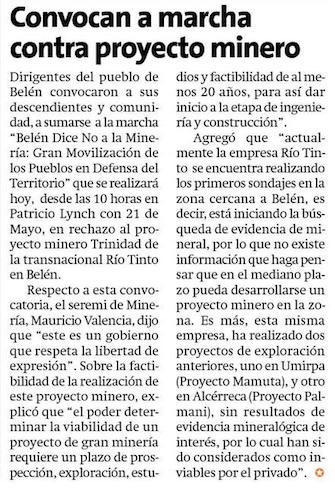 Manifestantes piden conocer proyecto de minería en Belén - (Estrella de Arica)