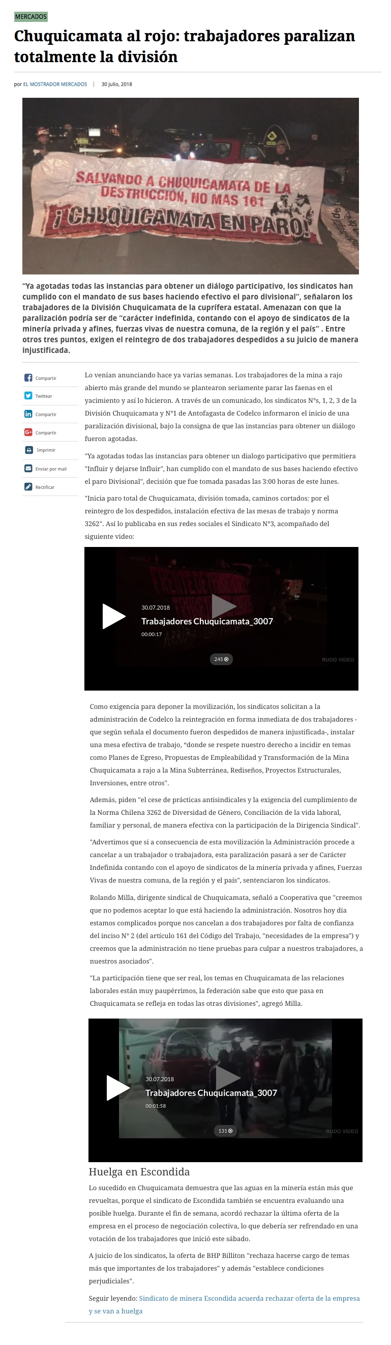 Sindicato 3 de Chuquicamata ante paralización: Ya agotamos todos los medios de comunicación - (economiaynegocios online)