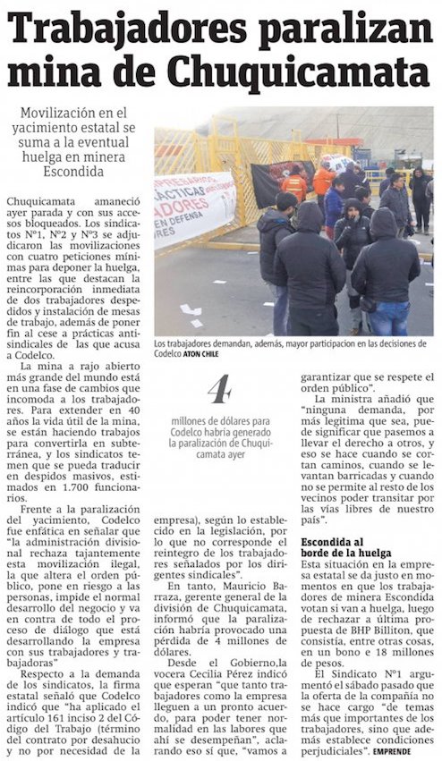Sindicato 3 de Chuquicamata ante paralización: Ya agotamos todos los medios de comunicación - (economiaynegocios online)